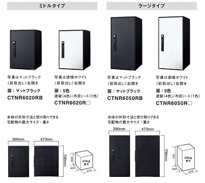 宅配ボックスのサイズもミドルサイズとラージサイズ、2つのサイズから選べます。