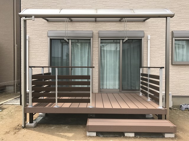 ウッドデッキとテラスを設置、洗濯物も安心して干せます