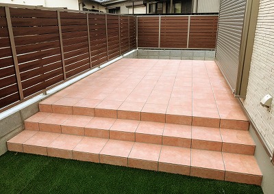 少し高めの目隠しフェンスでプライバシーに配慮した広めのタイルデッキを造成しました。