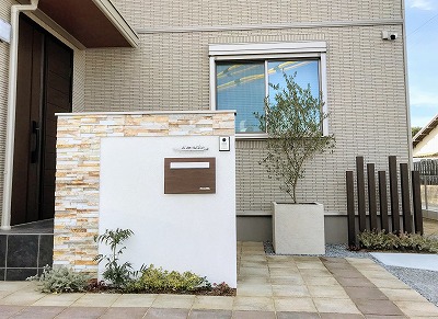 門柱は玄関ポーチギリギリまで寄せて配置しております。