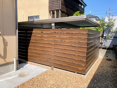標準的な折半屋根のカーポートの周りに格子材で囲う事で、