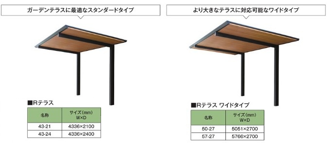 サイズ展開はガーデンテラスに最適サイズのスタンダードタイプと、より大きなテラスに対応可能なワイドタイプがございます。