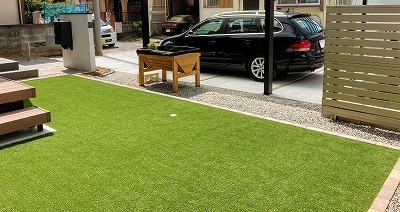 ちなみに人工芝の横には「ベジトラグ(タカショー)」を設置させていただきました。