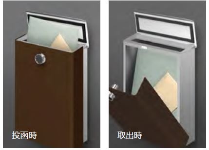 プレーンなデザインながらダイヤル錠がアクセントに。さまざまなエクステリアや建物に合わせやすい、飽きのこないポストです。