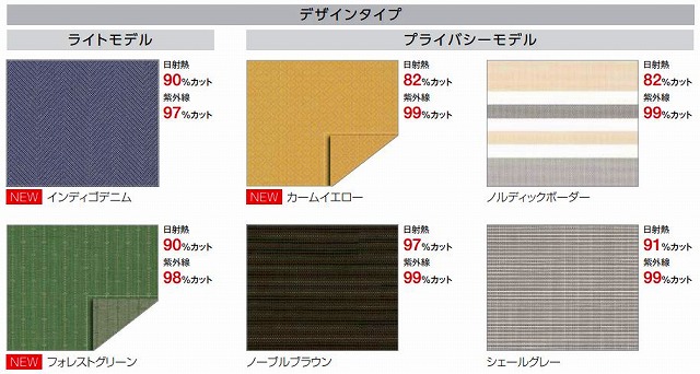 それぞれに紫外線カット率と日射熱カット率が少し違うのですが、