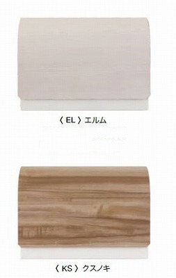 丸みを帯びたデザインのホワイトボックスに木目調シートでアクセント。