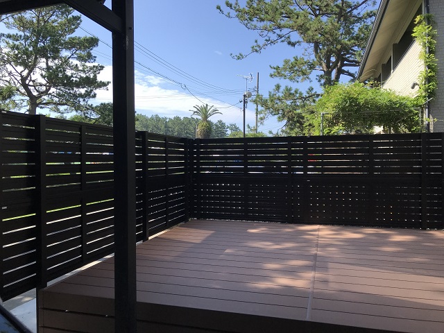 ↑↑↑こちらはウッドデッキと共に目隠しフェンスを施工した施工事例です。