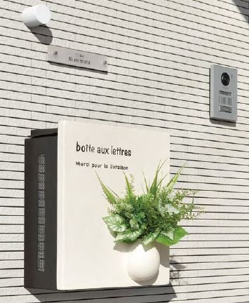 ポストの顔となる前面パネルにボタニカルな雰囲気が家の印象をやさしくしてくれます。