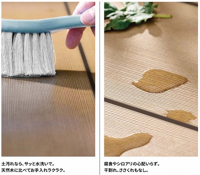 天然木デッキよりラクラクお手入れ可能なデッキDCは水洗いできれいにできます。