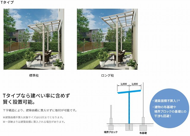 こちらのTタイプは、T字構造により建ぺい率に左右されずに取付可能なタイプです。