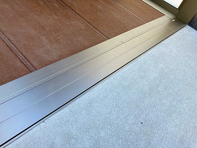 サンルームとスロープコンクリートの床の継ぎ目。