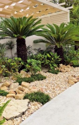玄関までのアプローチ横のスペースをロックガーデンにしたり