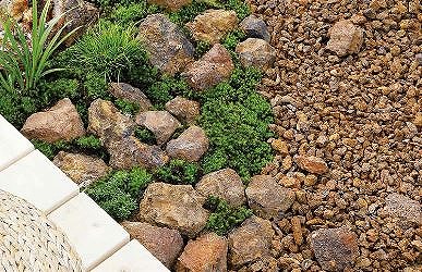 50mm~250mm程の大きさの割栗石、グレー、イエロー、オレンジと色の種類もあるのが、上記のメリットの根拠です。