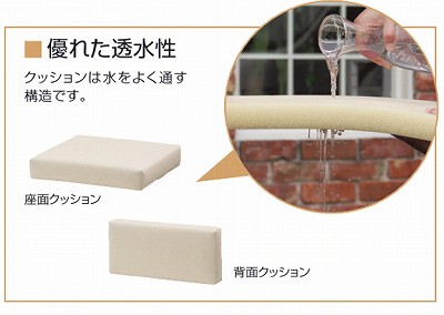 もし濡れたり汚れても安心な透水性の優れた構造で、二つ横に並べると2シーターソファにピッタリ収まるサイズです。