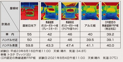 直射日光直下の車内と比較して、カーポート屋根下の車内の方が、温度上昇が緩やかな事が分かります。