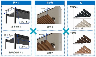 また格子の施工向きは縦格子、横格子と選択可能となっております。