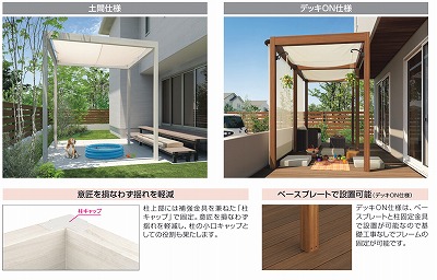 「アウトドアフレーム」はデッキONタイプと土間仕様からお選び頂けます。