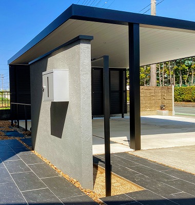 写真では分かりづらいのですが、サイドにルーバータイプのフェンスを雨除け・風除けとして取り付けをさせていただきました。