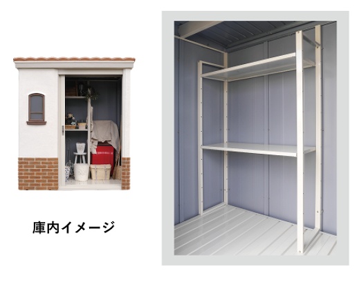 屋根が奥に向かって下り勾配になっているので入口が高くなっており、庫内の作業もスムーズに行うことが出来ます♪