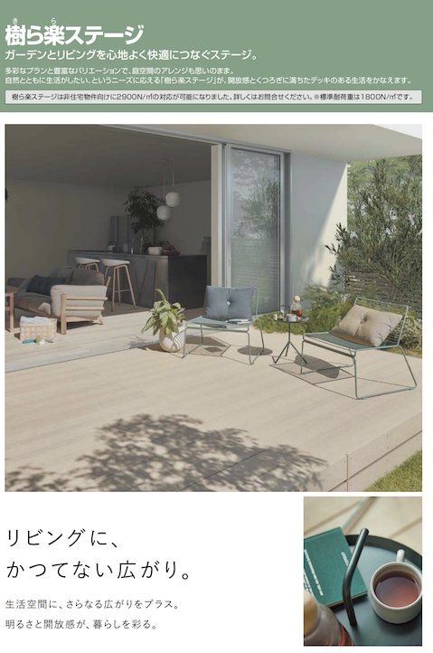 まずは、老朽化したレッドシダーの木製デッキを撤去し新しく、LIXIL樹ら楽ステージを設置いたしました。