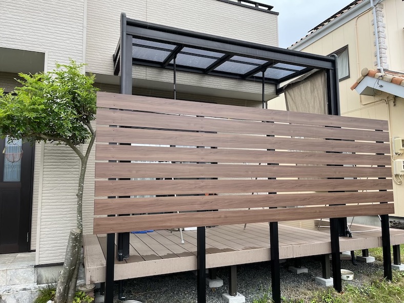 また、新たにリビング窓前にデッキがあるのですが、その前にアルミ製の目隠し板塀の