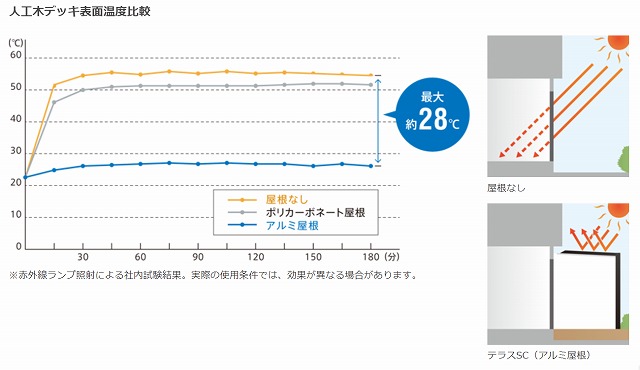 夏に表面温度が高くなる人工木デッキと併用すれば、表面温度上昇を抑えることが出来ます。