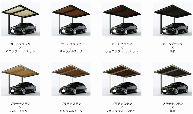 ルシアスカーポートには2種類の柱カラーと7種類の屋根材からコーディネート出来ます♪
