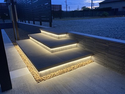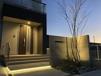玄関へと続く道を明るく照らし、帰宅時にホッとする癒しの空間になりました。