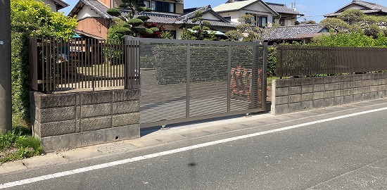 ここを今回はLIXILのエススライドを使って、車が出入りできるようにリフォームしました。