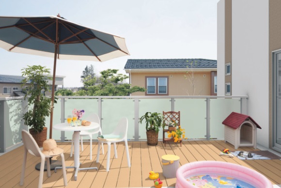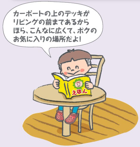 カーポート上をデッキスペースにすることでアウトドアライフも楽しめます。
