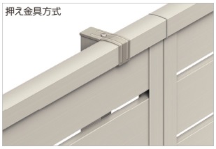 任意の位置、間隔で支柱を取り付けが可能なフリー支柱タイプ。フェンス本体の上・下桟をしっかり保持します。