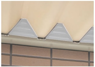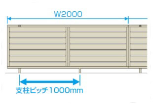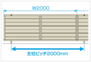 支柱ピッチは全サイズ2000㎜、施工性と意匠性を高めました。シャトレナは全サイズの支柱ピッチを2000㎜にできるためスッキリとした納まりになります。