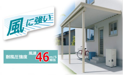 日本は、アジア・モンスーン地域に位置し、台風の常襲地帯であり、毎年のように我が国に襲来し、そのもたらす被害はきわめて大きいものがあります。暴風による被害を最小限に食い止めるためにも、耐風圧強度に優れたテラスをお勧めします。