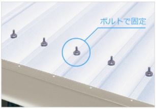 屋根材は、タイとフレームにボルトでしっかり固定しています。