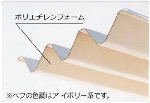 裏面にはペフを貼り付けたタイプも選べます。熱伝導率を抑え、寒冷時に発生する結露を低減します。