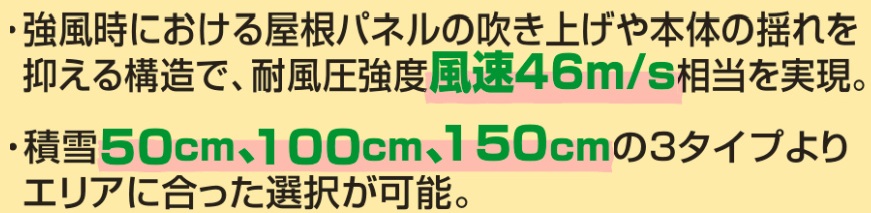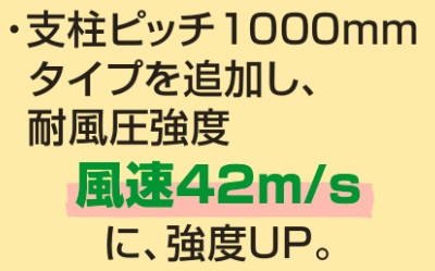 支柱ピッチを1000㎜で施工すれば、耐風圧強度が風速42m/s相当にアップします。