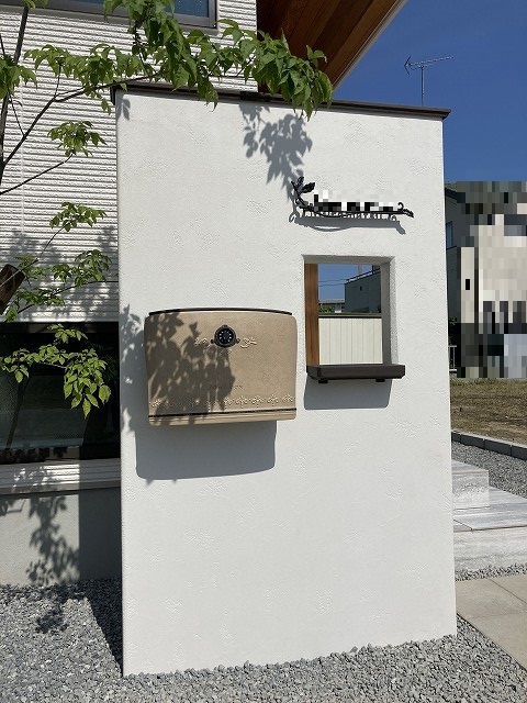 ポストには壁取付タイプで人気商品「ユニソン/テラ」を使用しました。