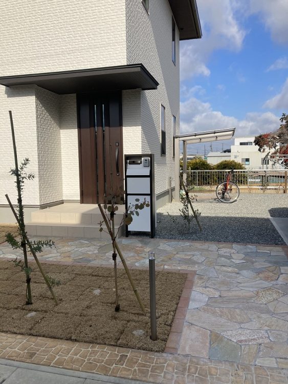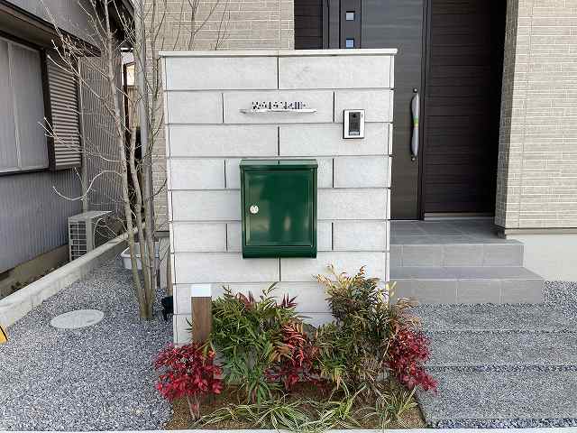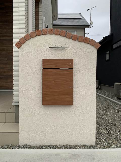 ポストには大容量の宅配ポスト、「ユニソン/ヴィコDB」を埋め込み施工しました。