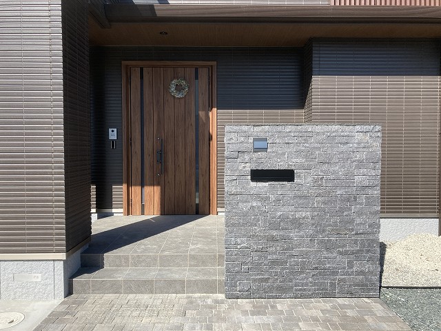 同じ貼り仕上げの門柱でも、使う素材を変える事でこんなにも違った表情が楽しめるんです。