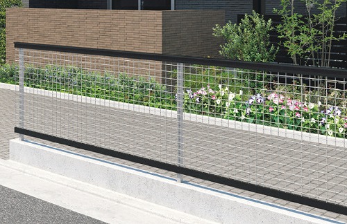 三協アルミのメッシュフェンス【ハイブリッドT・T】です。