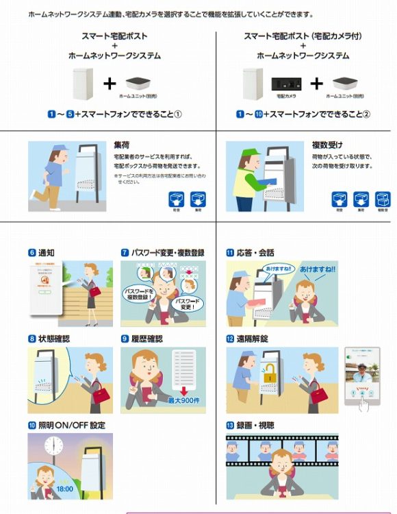 また、別売りのでホームユニット(ホームネットワークシステム)を取り入れることでスマートフォンと連携が機能面を拡張していくことも可能です。