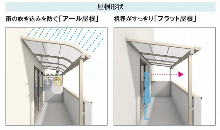 少し前まではR形状の屋根が人気があった印象でしたが、ここ数年はF形状のテラスを良く見かけるようになりました。