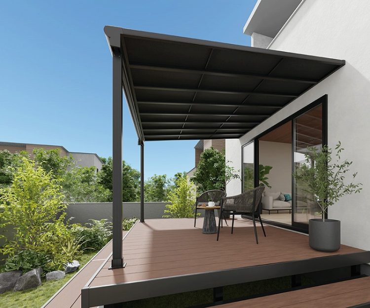 透過性がなく、マットな質感の屋根が日傘のような日陰効果と涼しさをつくりだす、「ブラックポリカーボネート屋根」も新たに追加されました。