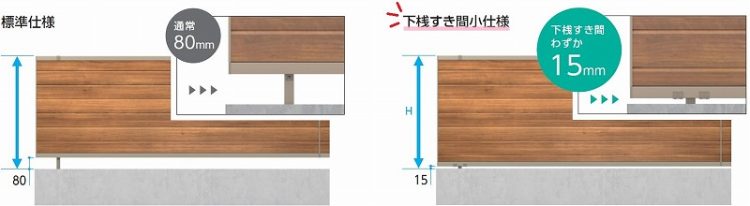この下桟すき間小タイプにすればオプションを付けることなく下のすき間がわずか15mmに!