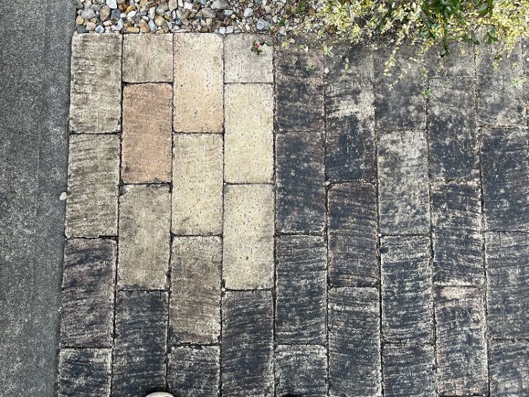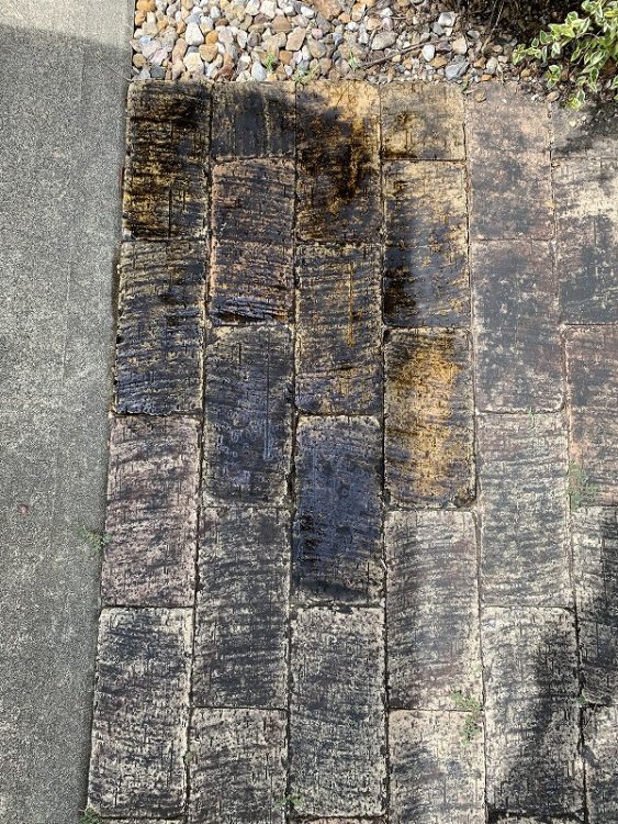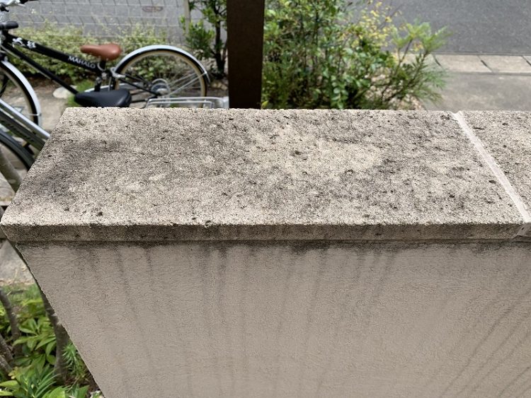 はじめはきれいだった駐車場のコンクリートや舗装材、門柱などが時が経つにつれて