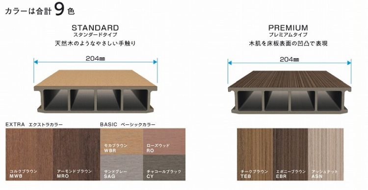 ヴィラウッドのカラー展開はスタンダードタイプの6色と、プレミアムタイプの3色からお選び頂けます。