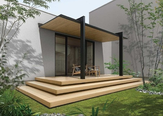 目隠しのデザインフェンスをつければ周辺からの視線をコントロールできるのでよりプライベートな空間が確保できます。