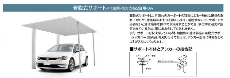 そのため、今回はオプションのサポート柱を設置し、耐風性能をさらに強化しました。