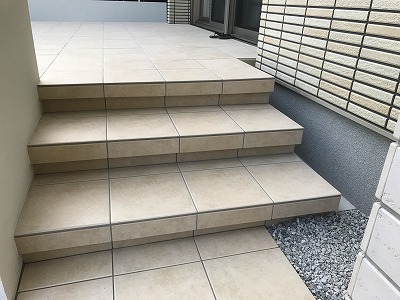 階段部にタイルが貼り終わった状態です。