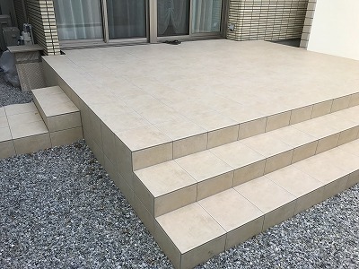 普段これほどの大きさのタイルデッキを造成する事はありませんが、やはり大きいほど見栄えが増して建物の外観がさらに良く見えます。タイルデッキはテラス屋根やガーデンルームの床面とも相性ピッタリですので、気になる方はお気軽に弊社「ハマニグリーンパーク」までお気軽にお問い合わせ下さいね。それではまた!